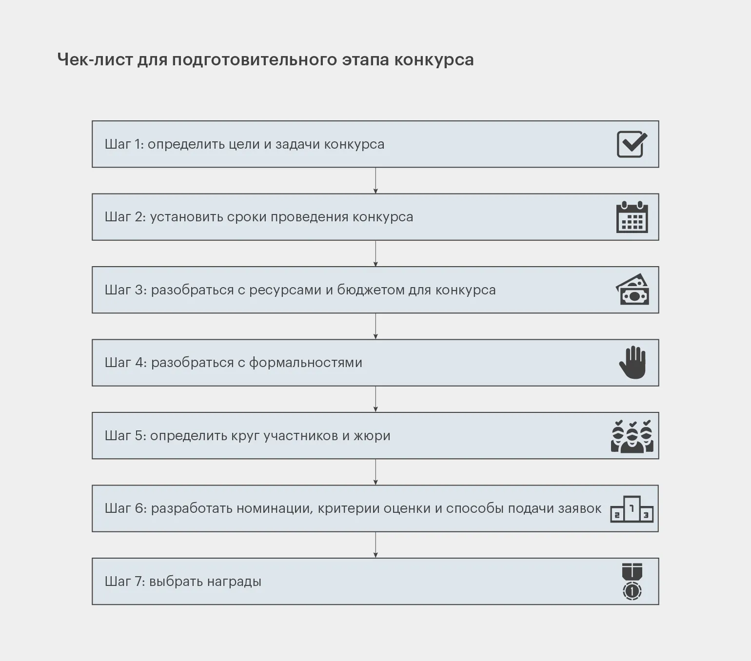 Для выделения бюджета и обоснования проведения конкурса в некоторых компаниях необходимо подготовить положение о конкурсе. Рекомендуется заранее уточнить этот момент у HR-отдела и юридического отдела перед началом планирования. Это позволит избежать недоразумений и обеспечить соблюдение всех необходимых процедур. Правильно оформленное положение о конкурсе поможет не только в распределении бюджета, но и в формировании прозрачных критериев для участников, что повысит эффективность всего процесса.