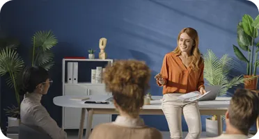 Яна Адриановская рекомендует использовать визуальный и ассоциативный язык, который будет близок вашей аудитории, на протяжении всего курса. Это касается оформления слайдов, элементов интерфейса, дополнительных материалов и образов персонажей, если они присутствуют. Применение единого стиля помогает создать гармоничное восприятие и повысить вовлеченность участников курса.