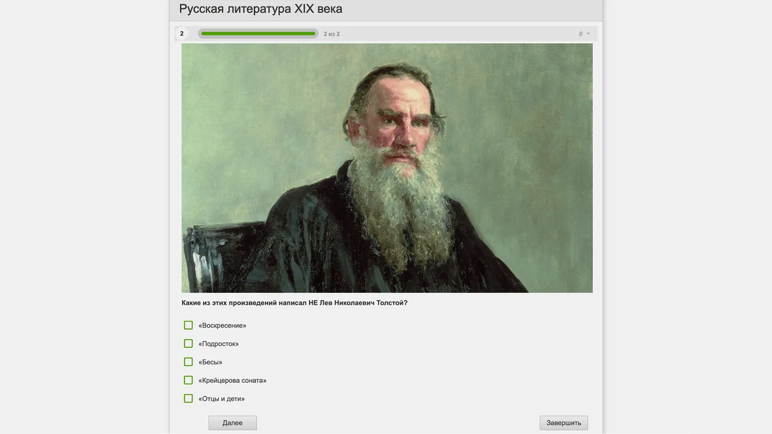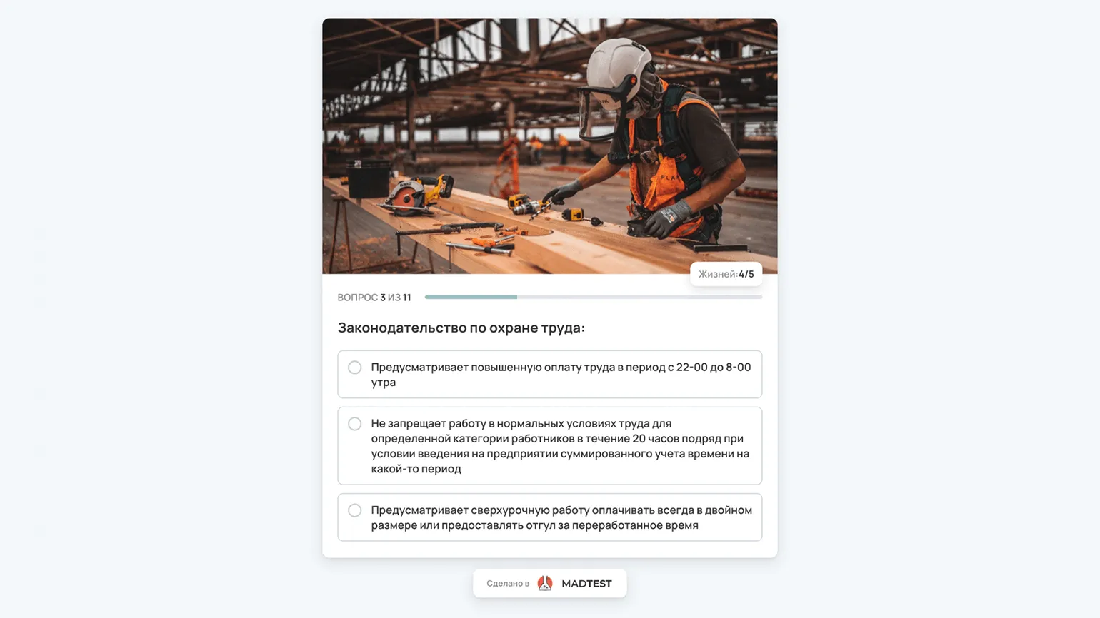 Вопросы можно дополнить изображениями, аудио и видео из YouTube, а варианты ответов могут включать картинки. Тесты имеют гибкие настройки: вы можете установить таймер, ограничить количество повторных попыток и задать максимальное число ошибок, после которого тест будет завершен. Доступно также оформление с возможностью брендирования. Тесты адаптируются под размер экрана, что обеспечивает удобство прохождения как на компьютере, так и на смартфоне.