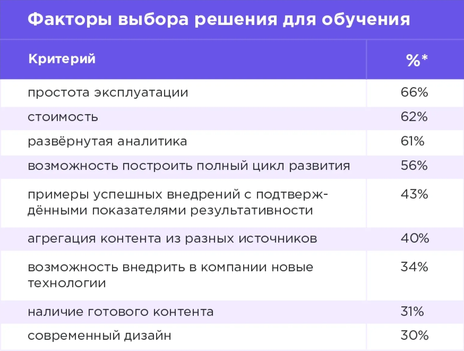 Количество сотрудников в компании напрямую влияет на её потребности. В крупных организациях приоритетом становится аналитика, что обусловлено необходимостью оценки эффективности обучающих программ. В среднем бизнесе основным фактором выбора являются затраты, тогда как для малых предприятий ключевым критерием выступает удобство и простота использования решений.
