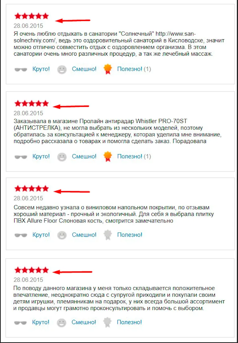 Заказные отзывы, в отличие от естественных, часто публикуются в один день и имеют похожие формулировки и объем текста. Это свидетельствует о том, что авторы получили одинаковые задания от единого заказчика. Такой подход приводит к искусственному увеличению количества положительных оценок, что может ввести потенциальных клиентов в заблуждение. На фоне разнообразия и естественности настоящих отзывов, заказные комментарии выглядят неестественно и могут негативно сказаться на репутации бренда.