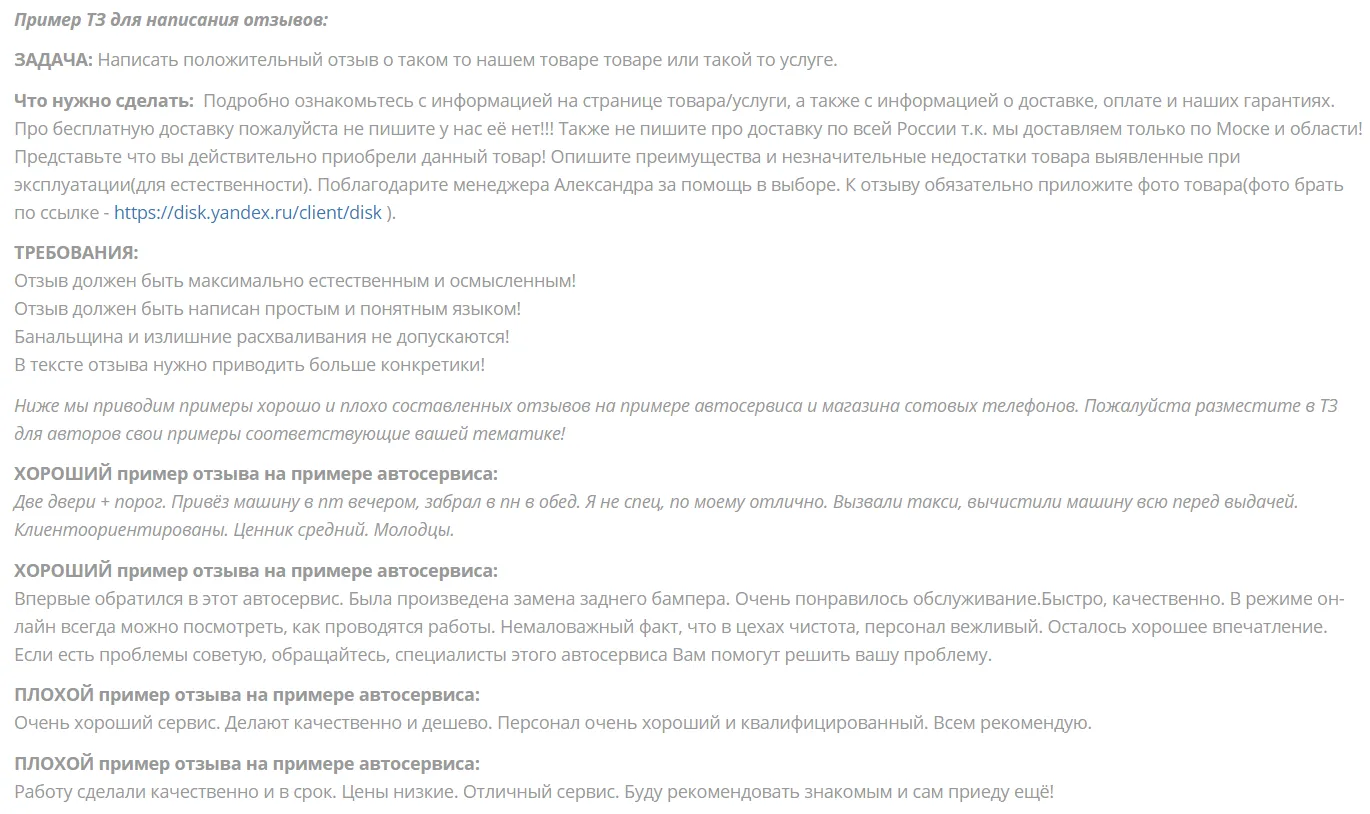 При оформлении заказа на отзыв клиент передает в агентство или на биржу техническое задание, в котором четко указаны требования к отзыву и сроки его исполнения. Ключевые моменты задания обычно включают в себя следующие аспекты: