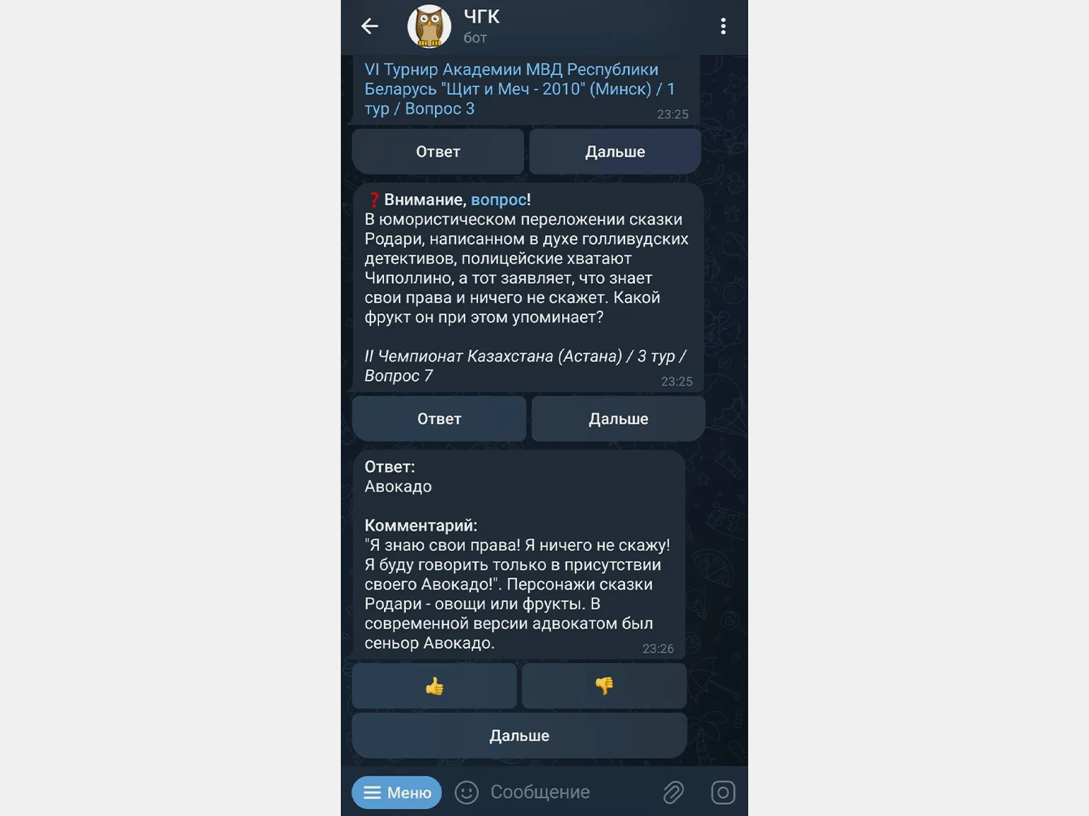 Бот «ЧГК» — это виртуальный помощник для поклонников интеллектуальных игр. Он задает вопросы, отслеживает статистику игроков и предоставляет правильные ответы. Участники могут выбирать турниры и категории вопросов, а также настраивать таймер для увеличения напряжения во время игры.