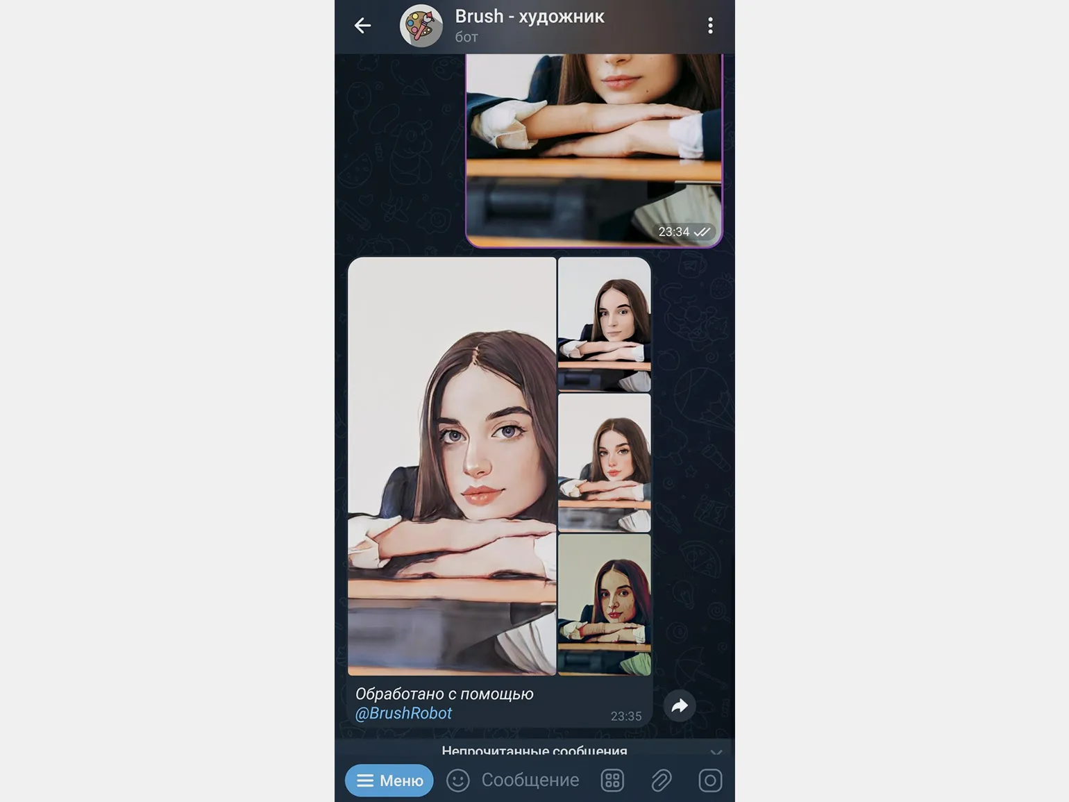 С помощью бота «Brush — художник» вы можете превратить свои фотографии в произведения искусства. Просто отправьте изображение и выберите стиль оформления: будь то аниме, живопись Ван Гога, архитектура Гауди или стиль Моне. Этот бот использует современные алгоритмы для достижения впечатляющих результатов, что делает его идеальным инструментом для креативных личностей.