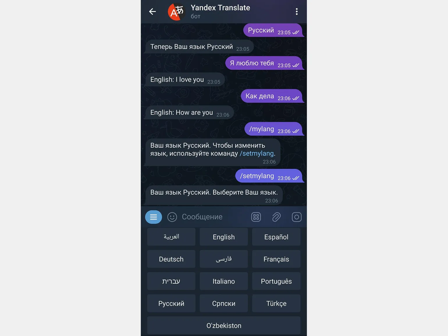 Yandex Translate — официальный бот от сервиса «Яндекс Переводчик». Он предоставляет возможность переводить тексты на разные языки. Это отличный инструмент для быстрого понимания иностранной информации.