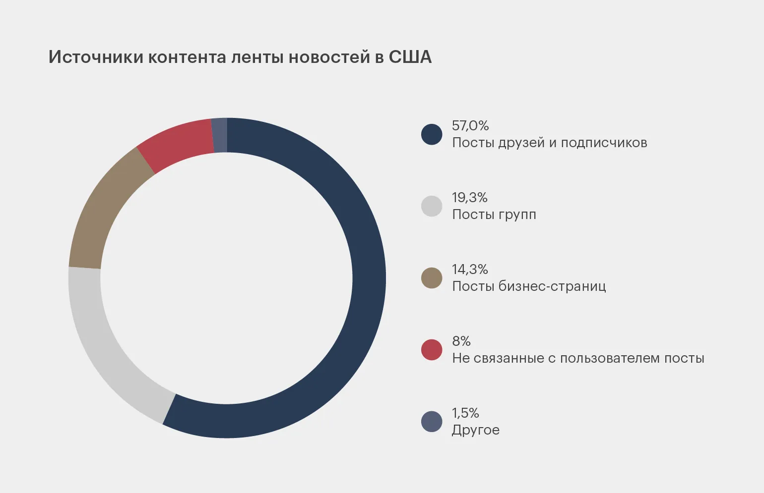 В 2018 году Facebook объявил о необходимости ограничить количество брендированного контента в своей ленте новостей. Компания приняла решение сосредоточиться на постах от друзей и близких, что направлено на улучшение пользовательского опыта. Это изменение стало важным шагом в стратегии Facebook, направленной на создание более личного и значимого взаимодействия между пользователями. Сосредоточение на контенте от близких людей помогает повысить вовлеченность и удовлетворенность пользователей платформы, что в свою очередь может способствовать росту её популярности и удержанию аудитории.