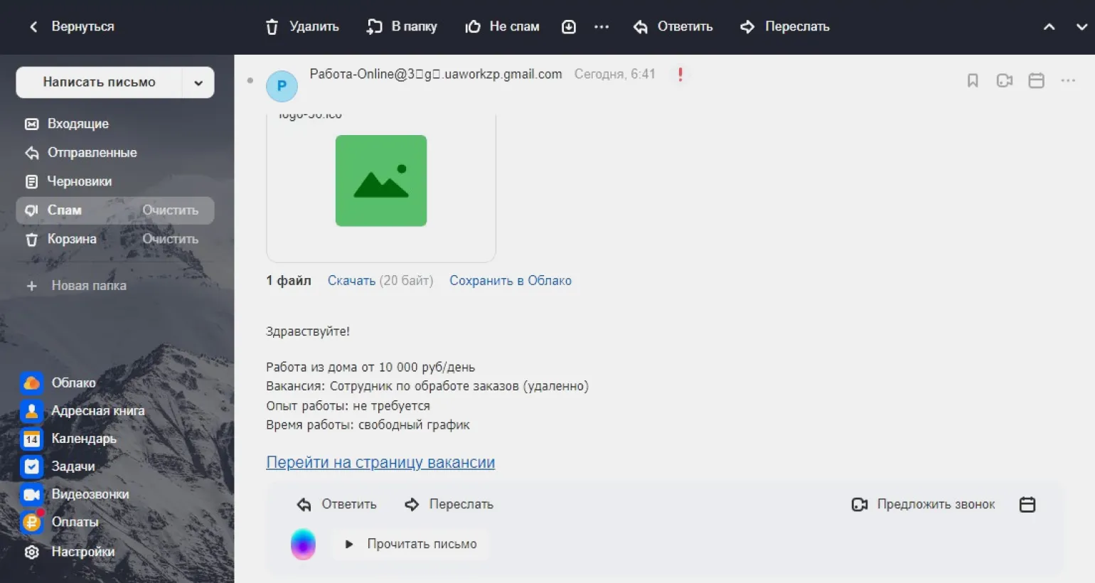 Типичный пример спама: получатель не запрашивал информацию о работе, но её прислалиСкриншот: Skillbox Media
