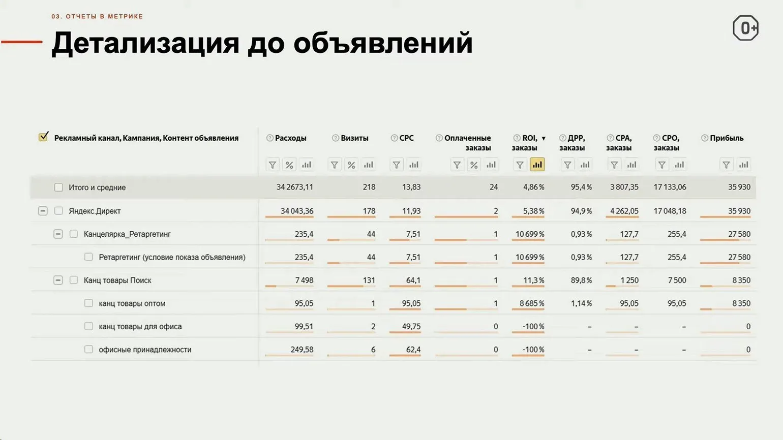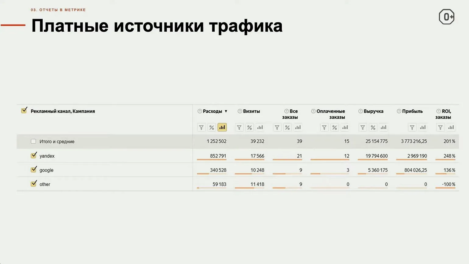 Сравнение эффективности рекламных каналов. Скриншот: «Яндекс. Обучение рекламным технологиям» / YouTube