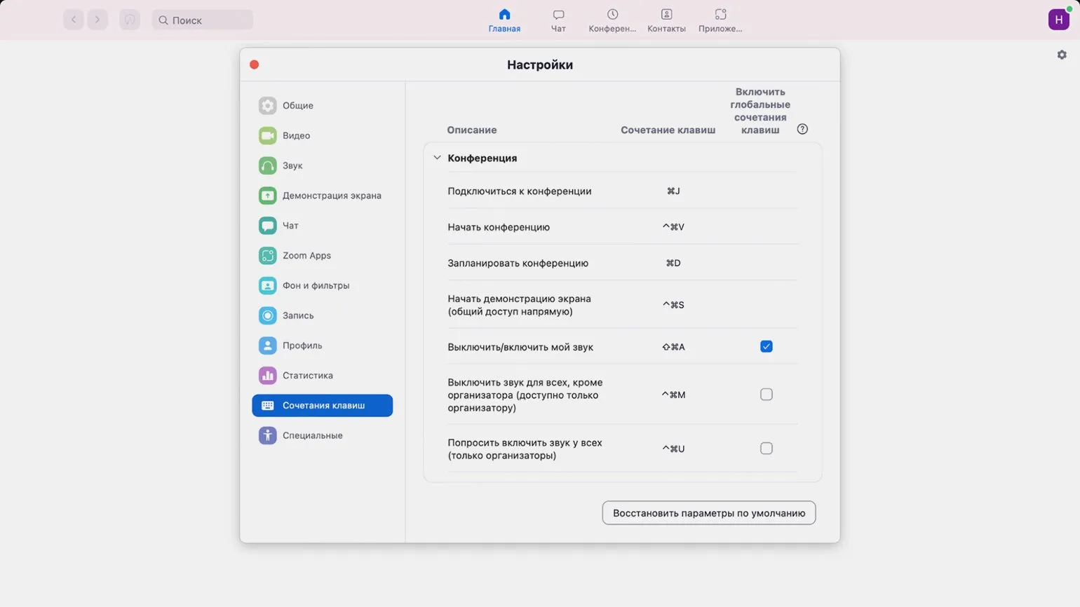 Функция «Пробел» в Zoom доступна только при открытом окне приложения. Однако управление с помощью клавиш возможно даже в свернутом режиме. Чтобы активировать эту опцию в десктопной версии, кликните на иконку профиля и выберите раздел «Настройки». Это позволит вам эффективно управлять встречами и улучшить взаимодействие с участниками.