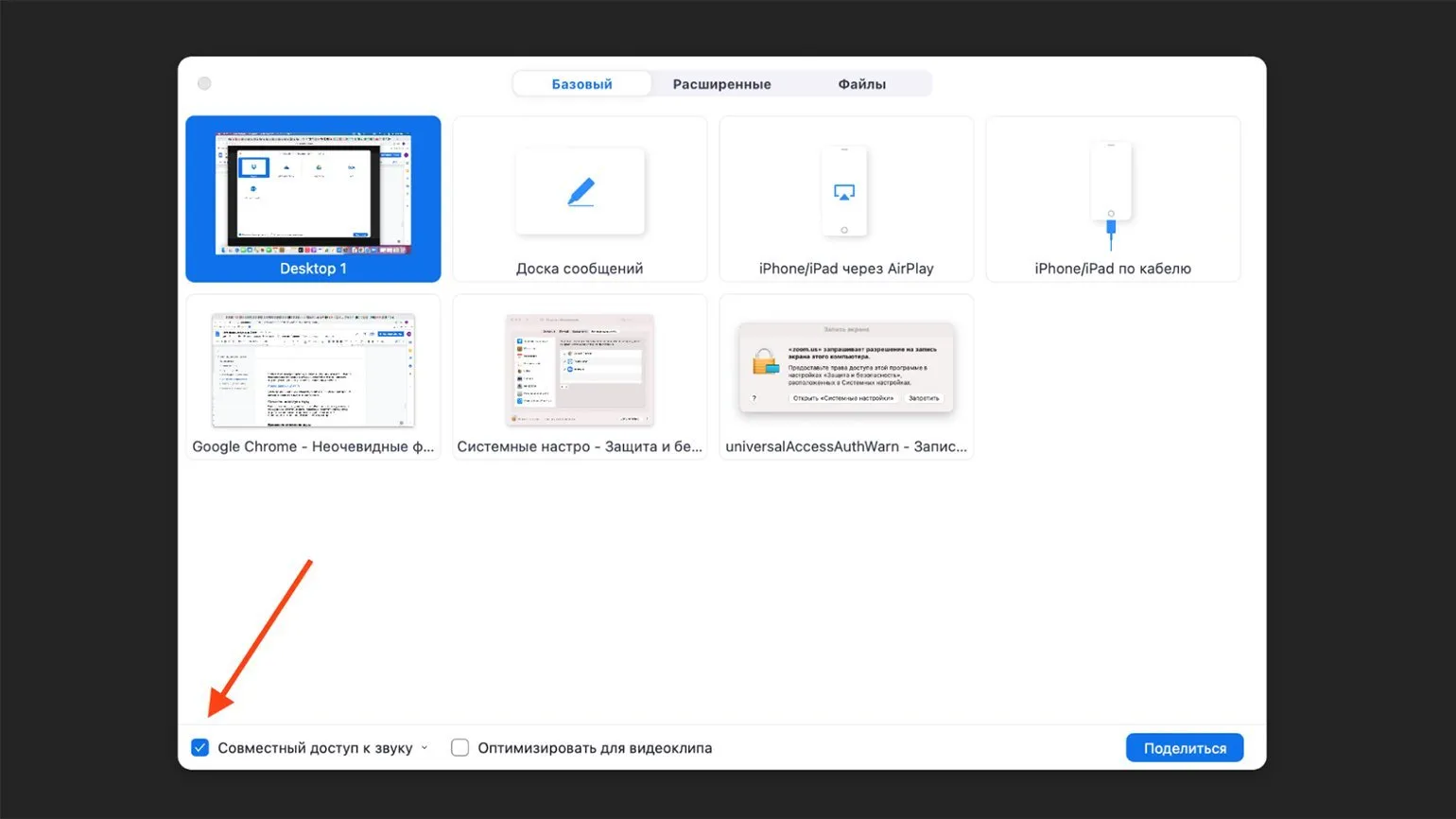 Если вы планируете показать участникам конференции видео и затем обсудить его, вам не нужно ждать, пока каждый посмотрит ролик на своем устройстве. Платформа Zoom позволяет организовать удобный совместный просмотр с трансляцией звука с вашего компьютера. Для этого достаточно нажать на кнопку «Демонстрация экрана» и установить галочку в пункте «Совместный доступ к звуку». Это обеспечит участников качественным звуковым сопровождением, что сделает обсуждение более продуктивным и вовлеченным.