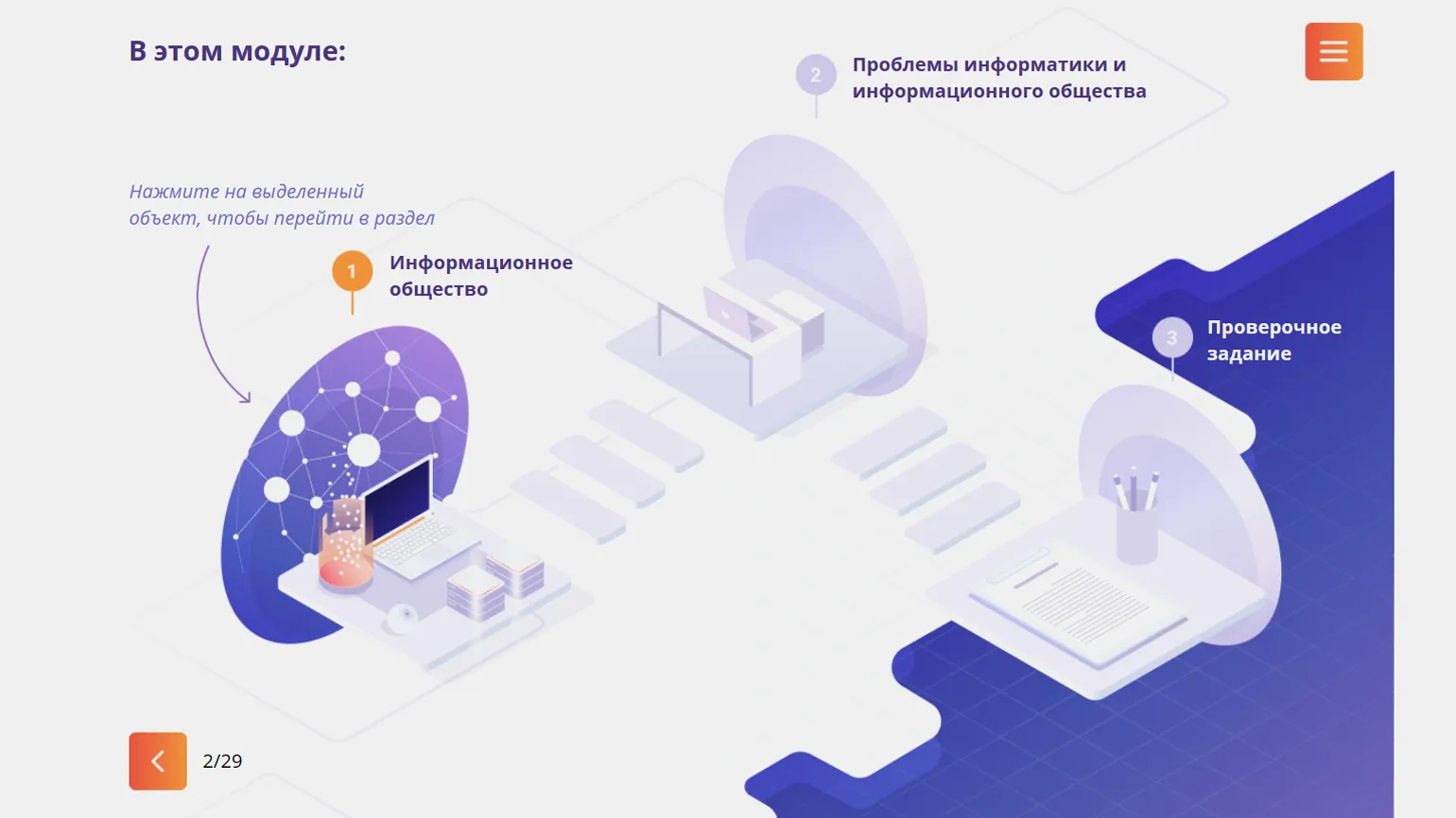 - Помогает ориентироваться в виртуальном пространстве курса.