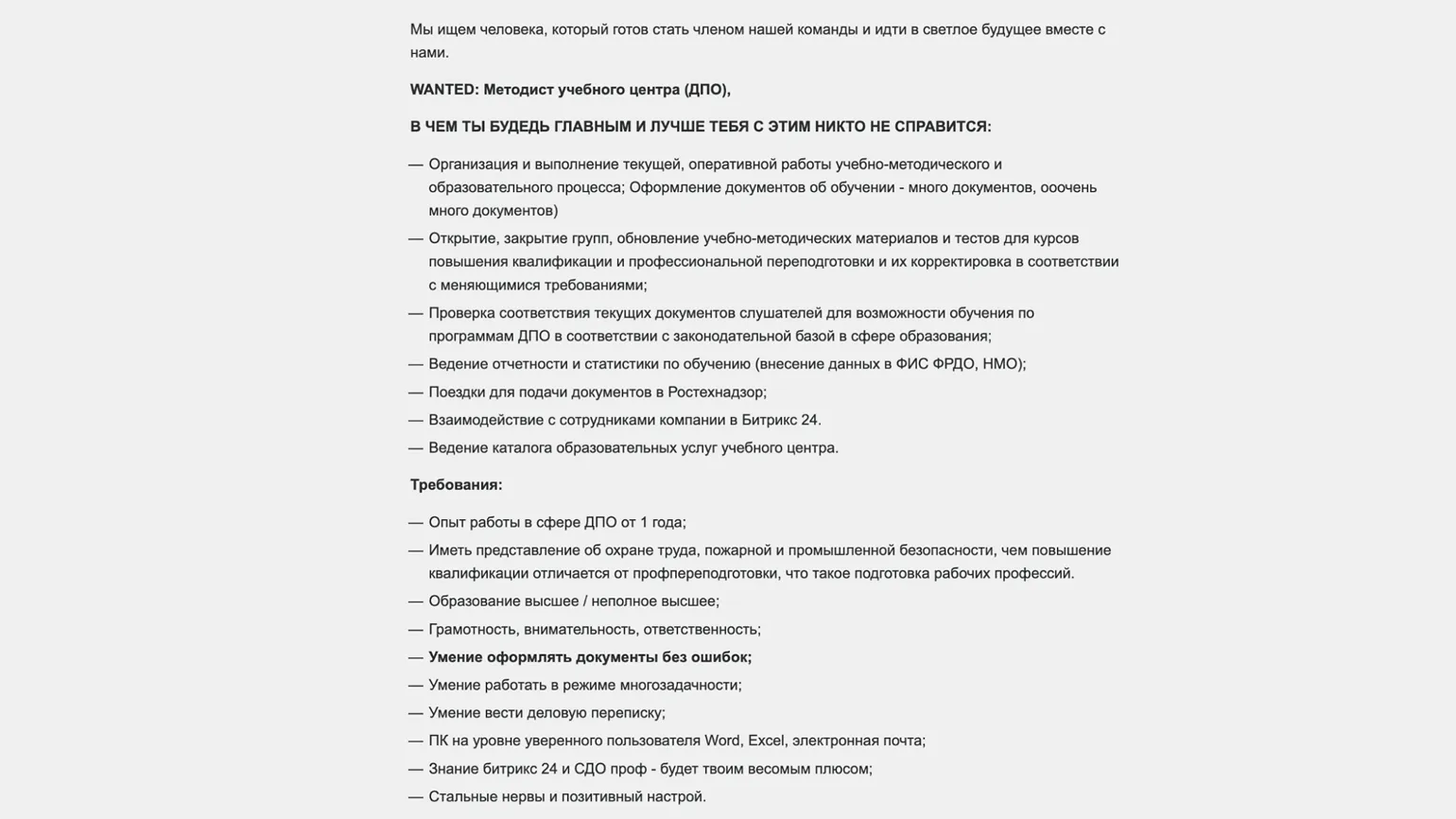 Методическая работа в области дополнительного профессионального образования (ДПО) включает в себя значительное количество документооборота, что делает её одной из самых «бумажных» профессий. В рамках этой деятельности работают учебные центры, направленные на повышение квалификации и профессиональную переподготовку. Эти организации могут быть как государственными, так и частными. Основной целью обращения сотрудников в такие центры является получение удостоверения о прохождении обучения, что имеет важное значение для аттестации работников и может повлечь за собой другие юридически значимые последствия. Таким образом, формальное дополнительное профессиональное образование играет ключевую роль в профессиональном развитии специалистов и обеспечении их соответствия современным требованиям рынка труда.