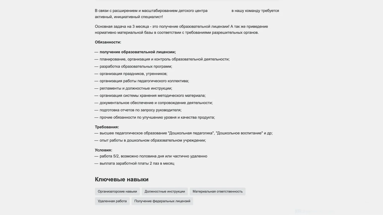 Для занятия данной должности необходимо наличие высшего педагогического образования и как минимум двухлетний опыт работы по специальности. Обязанности специалиста четко определены в разделе «Квалификационные характеристики должностей работников образования» Единого квалификационного справочника должностей руководителей, специалистов и служащих. Опыт и квалификация играют ключевую роль в успешном выполнении задач, связанных с образовательным процессом и развитием учащихся.