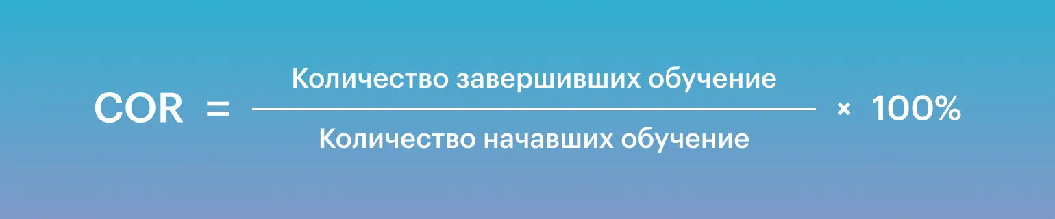 В русскоязычном пространстве метрика COR известна как доходимость. Она отображает процент студентов, успешно завершивших курс. Изучение доходимости позволяет образовательным учреждениям оценивать эффективность своих программ и выявлять области для улучшения. Высокая доходимость свидетельствует о качестве курса и его способности удерживать внимание учащихся, что в свою очередь способствует повышению репутации учебного заведения.