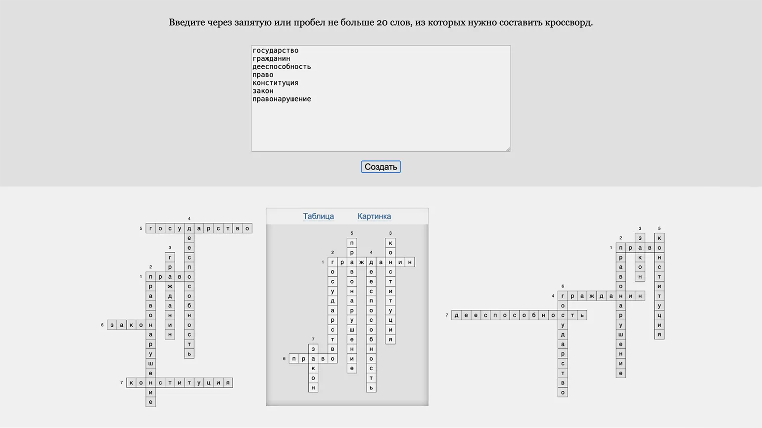 Выбрав наиболее подходящий кроссворд, его можно сохранить в формате изображения или документа с таблицей. В зависимости от целей урока, учитель может оставить кроссворд незаполненным, добавить определения и предоставить его ученикам для решения. Также возможно распечатать вариант с уже размещенными словами в сетке, чтобы ученики самостоятельно составили к ним определения. Такой подход способствует развитию мышления и навыков анализа у учащихся.