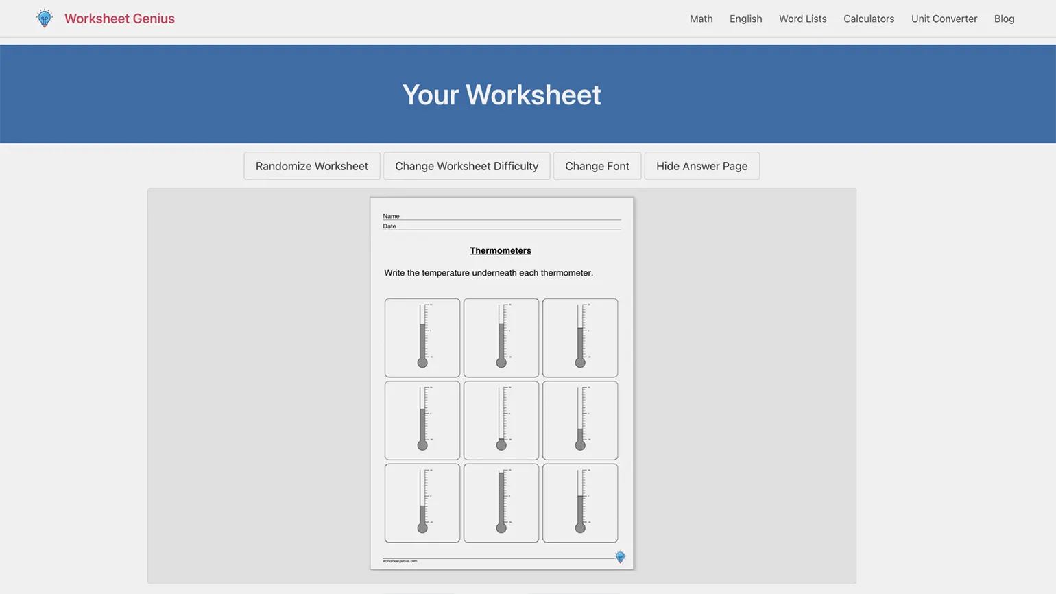 Сервис предлагает широкий выбор генераторов рабочих листов, которые доступны совершенно бесплатно. В арсенале инструментов представлены генераторы математических задач на сложение, вычитание, умножение и деление, а также линейные и квадратные уравнения. Кроме того, Worksheet Genius способен создавать разнообразные задачи с числами, включая операции с дробями: преобразование обыкновенных дробей в десятичные и округление десятичных дробей, а также задачи на проценты. Пользователи могут находить необходимые точки на координатной сетке, определять температуру по термометру и время по часам. Этот сервис является отличным ресурсом для учителей и студентов, желающих улучшить свои математические навыки.