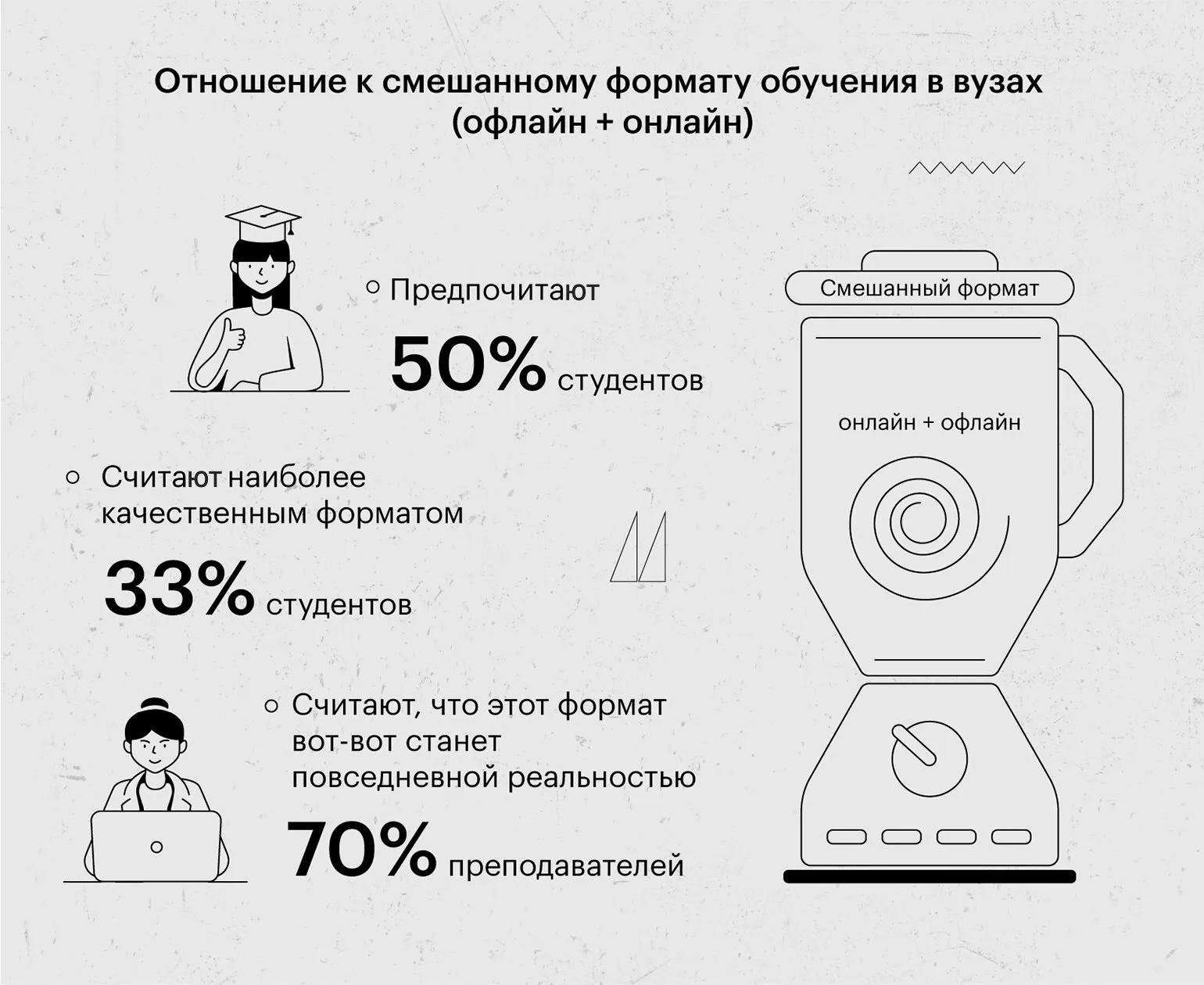 Министерство образования и науки России провело опрос среди студентов и преподавателей о восприятии смешанного формата обучения. Результаты исследования показали, что в прошлом году респонденты оценили цифровые методы обучения выше, чем в 2020 году. Это свидетельствует о растущем интересе и положительном отношении к современным образовательным технологиям в российском образовательном процессе.