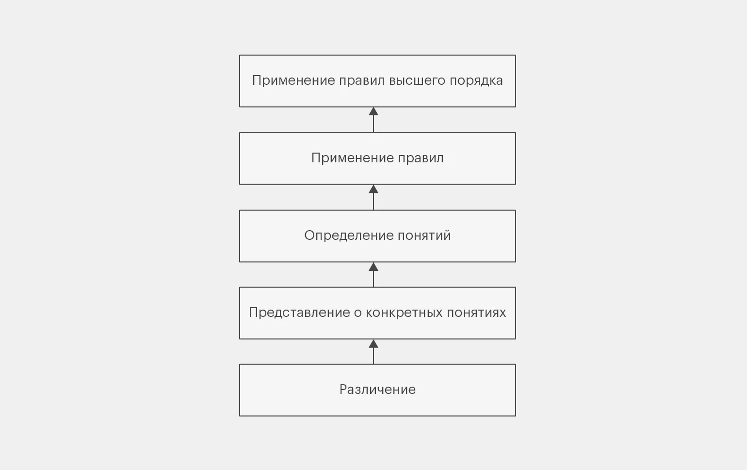 Иерархия интеллектуальных навыков, разработанная Робертом Ганье. Источник: The Conditions of Learning («Условия обучения»), Роберт Ганье, 1965 г. Инфографика: Майя Мальгина для Skillbox Media