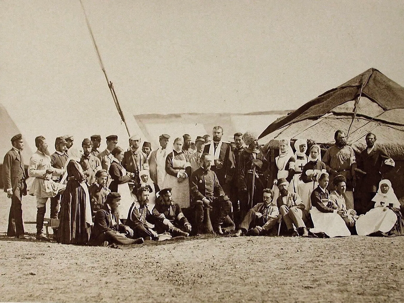 Медицинский персонал санитарного отряда профессора Рейера, Эриванская губернияФото: «Альбом Александропольского отряда», 1877–1878 гг. / ЦГАКФФД СПб / «Архивы Санкт-Петербурга»