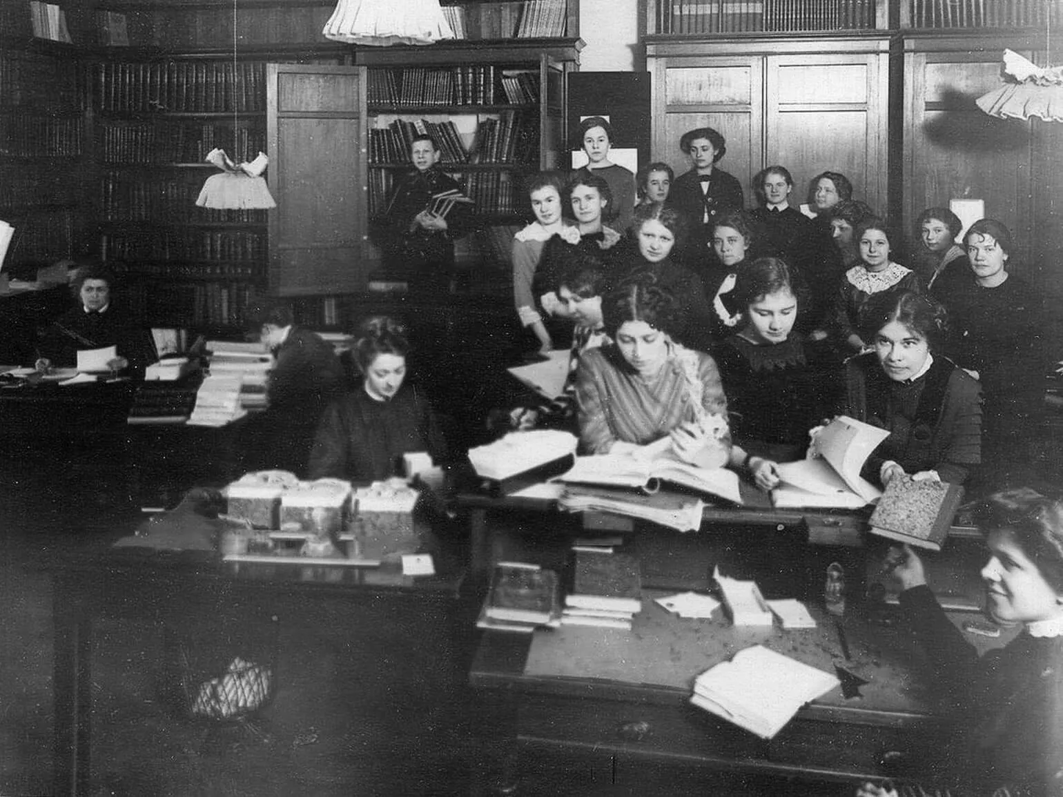 Группа студенток в читальном зале библиотеки. Императорский Женский Педагогический Институт в Санкт-Петербурге, 1906 г. Фото: Станислав Полонский / Public Domain