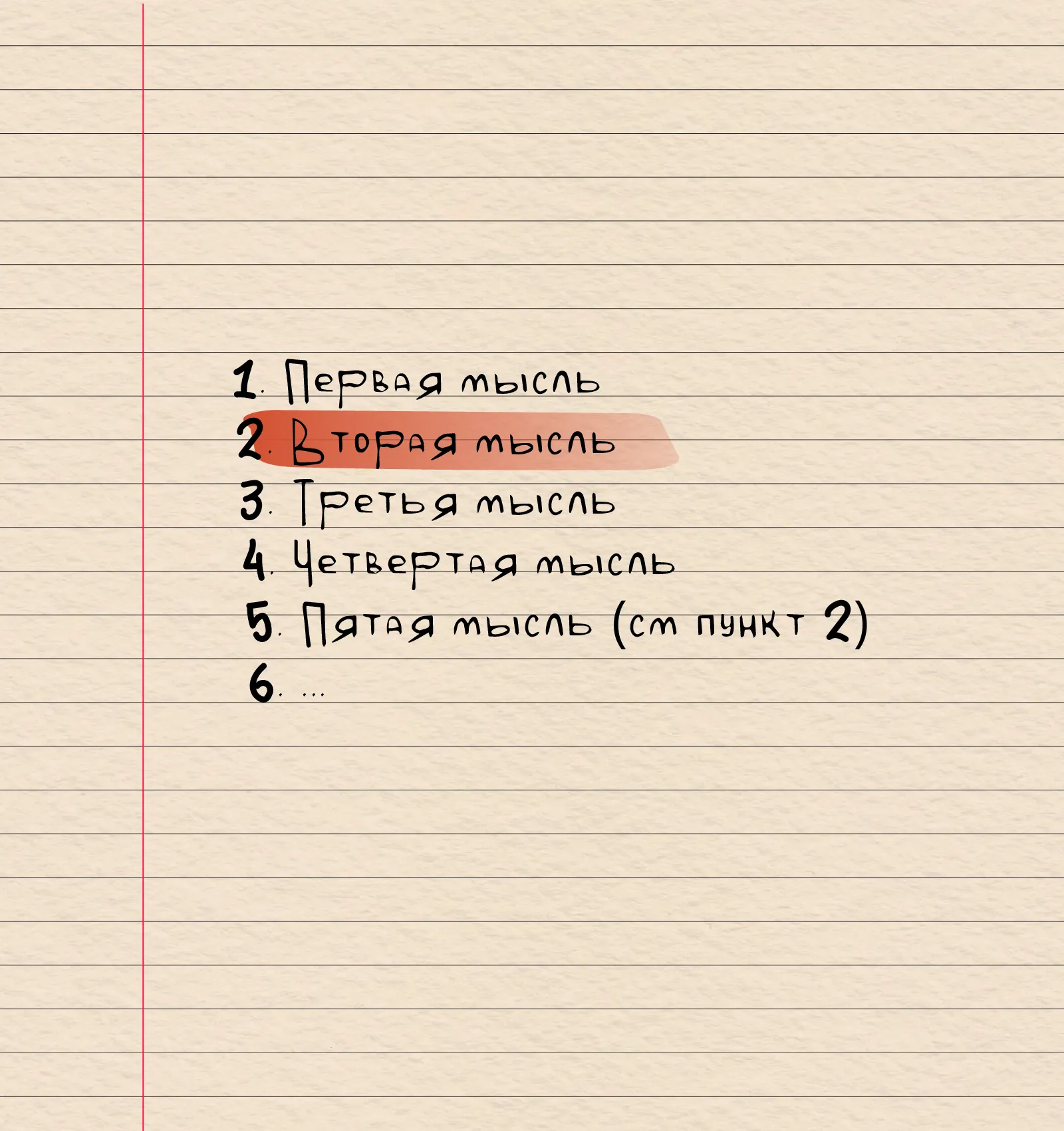- Пишите с одной стороны листа, а новую идею — с новой строки, разбивая на абзацы. Оставляйте отступы между строками, потом впишете там свои примечания.