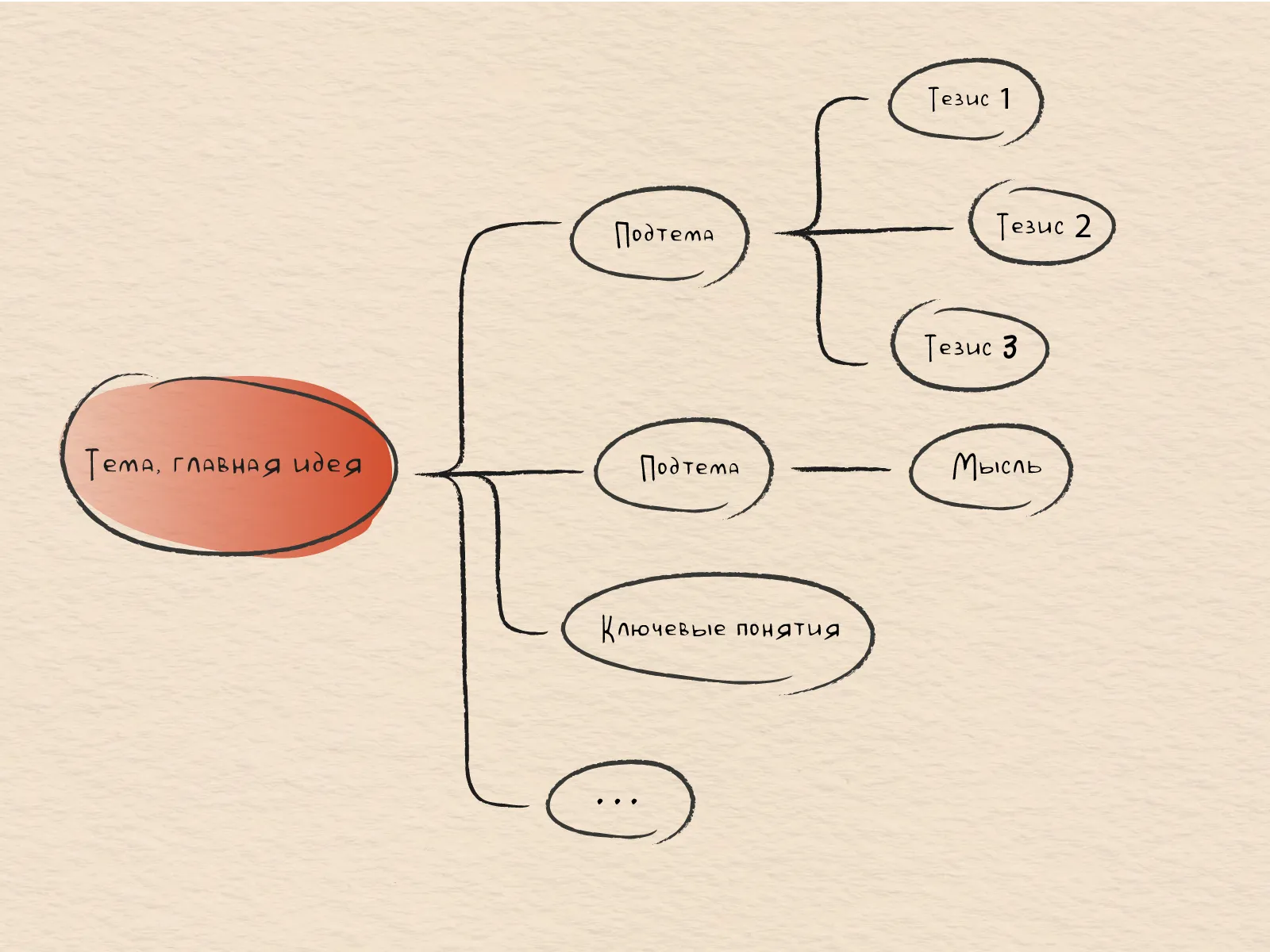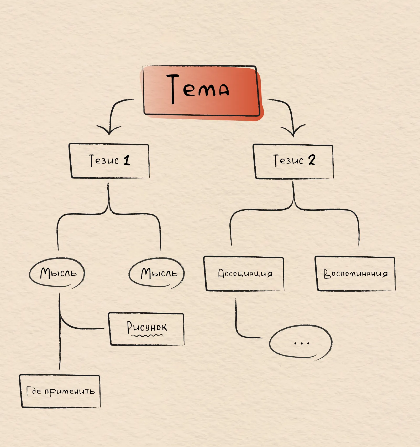 В центре страницы разместите основное понятие или ключевую идею, выделив её рамкой или кругом. В ходе лекции добавляйте к этому ядру связанные блоки, такие как слова, ассоциации, рисунки и мысли. Распределяйте эти «ветки» в разные направления. Такой подход к конспектированию способствует структурированию сложной информации и улучшению её запоминания.