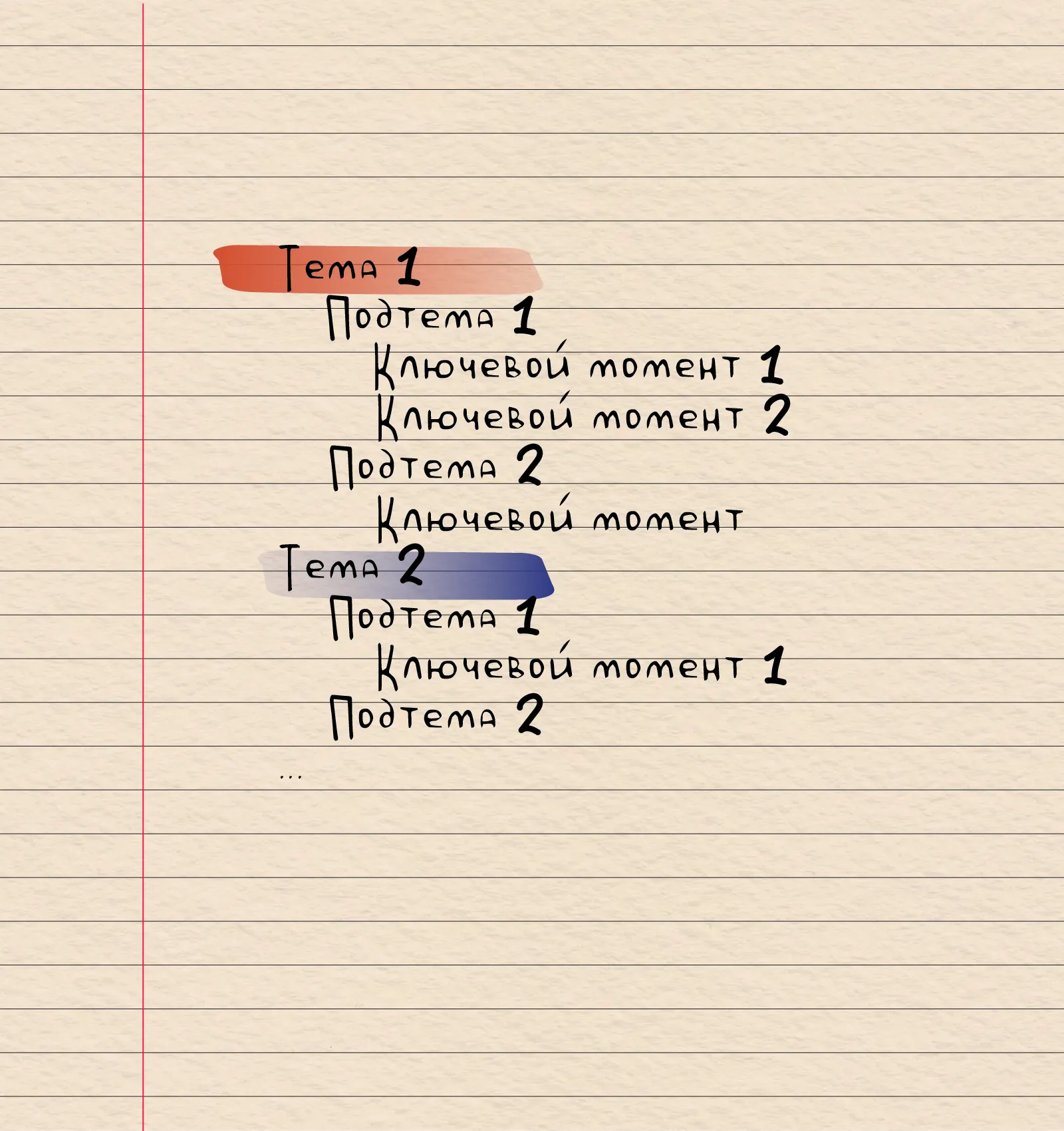 Метод заключается в систематическом изложении тезисов от общего к частному. Начните с выбора четырех или пяти ключевых моментов лекции. В левом верхнем углу запишите основное понятие или тему. Затем с помощью отступов добавьте подтемы к каждой основной теме. К подтемам прикрепите более подробные тезисы или мысли. В результате вы получите структурированный список с несколькими уровнями вложенности. Для маркирования можно использовать стрелки, цифры, буквы или точки. Такие заметки будут выглядеть организованно и помогут лучше усвоить материал.