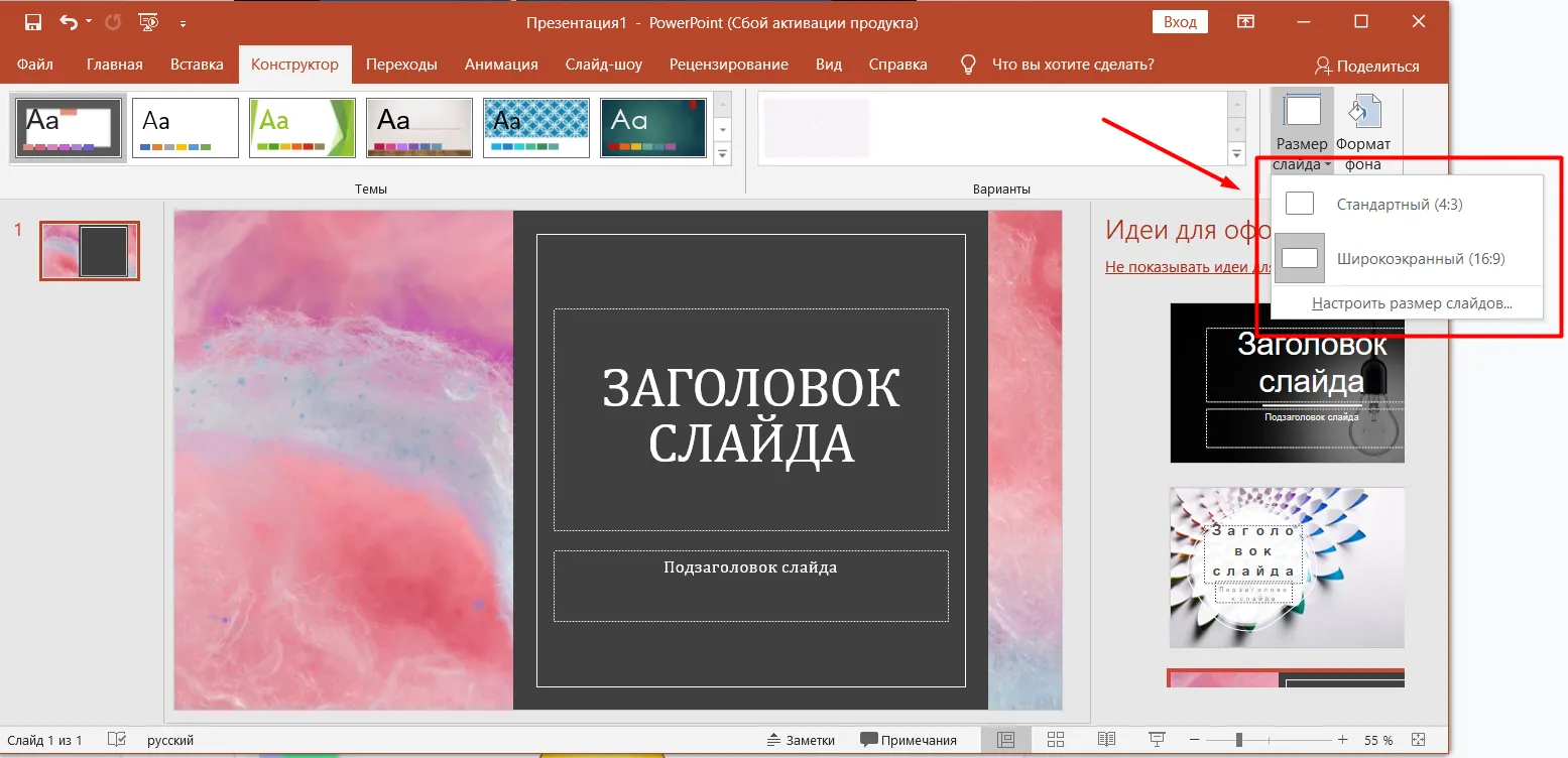 6. Ошибки с размером слайдов в PowerPoint