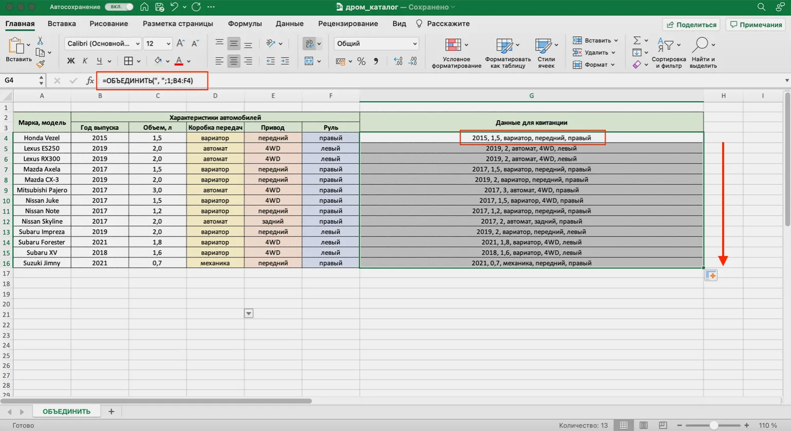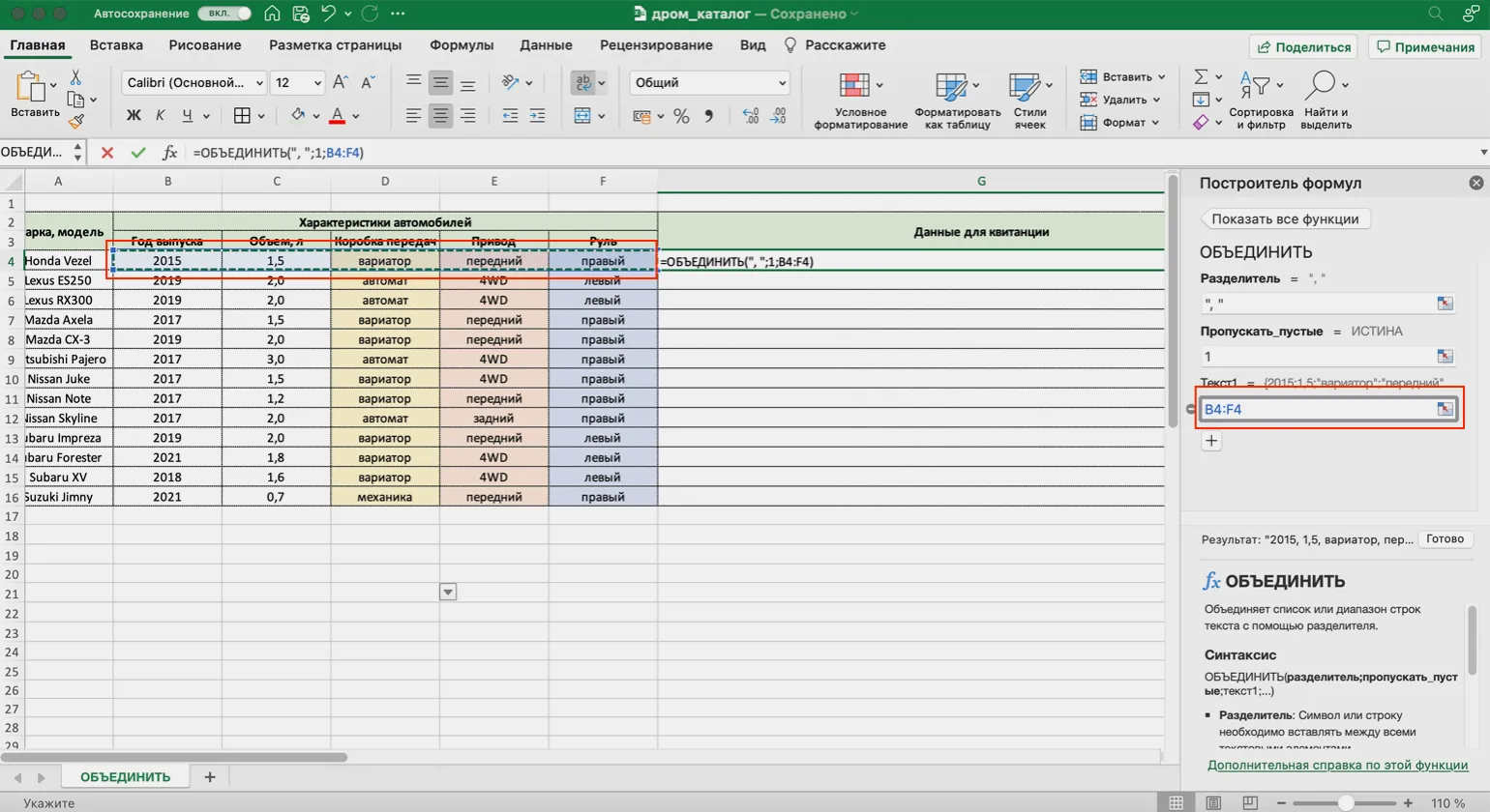 Если вам необходимо объединить данные из диапазона B4:F4 с разделением значений запятой и пробелом, используйте формулу: =ОБЪЕДИНИТЬ(«, «; 1; B4:F4). Эта формула обеспечит компактное и структурированное представление ваших данных, что облегчит их анализ и восприятие. Объединение данных таким образом позволяет эффективно организовать информацию и сделать её более читабельной.