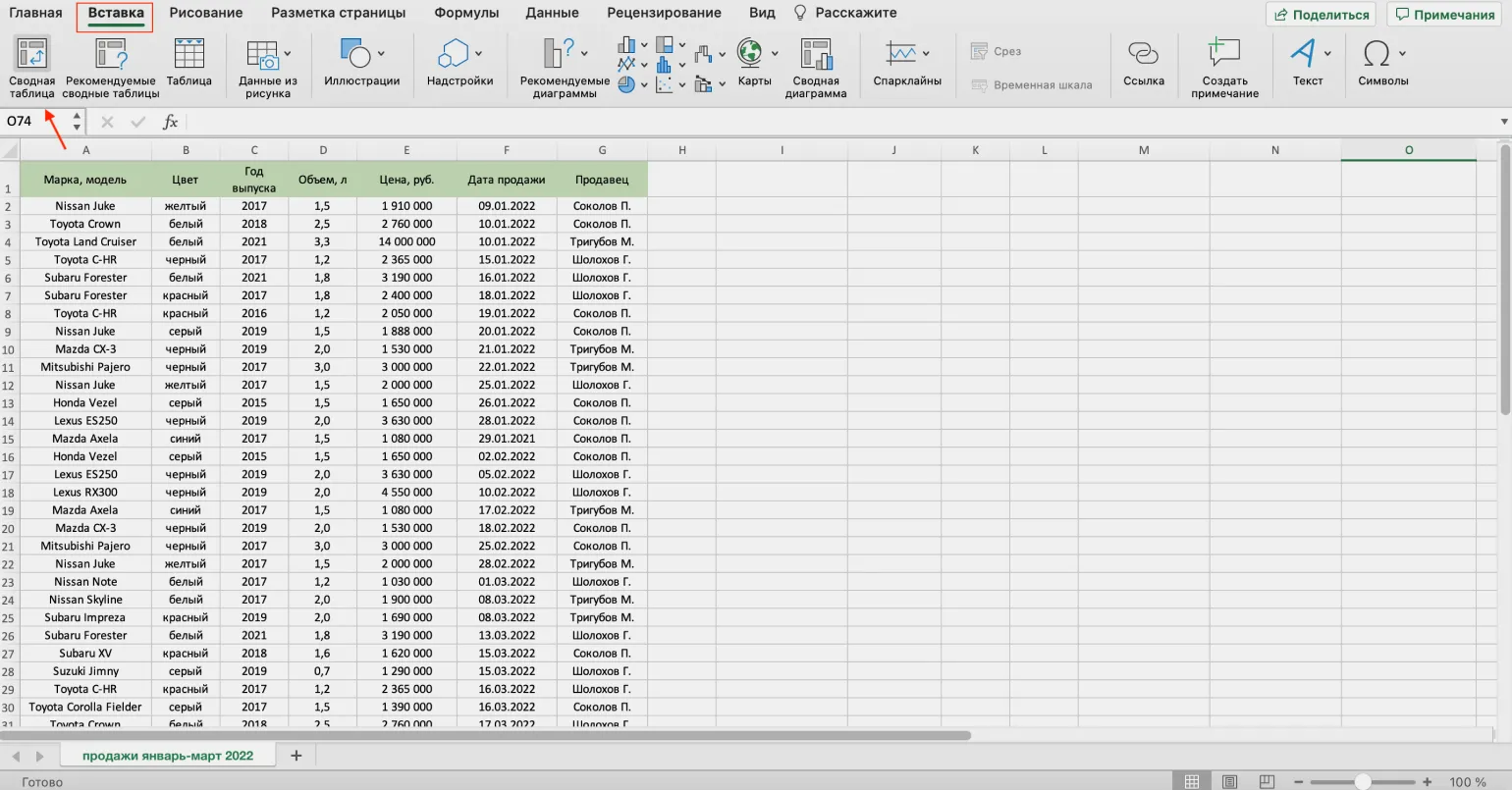 - лист, на который сводная таблица перенесёт обработанные данные для дальнейшего анализа.