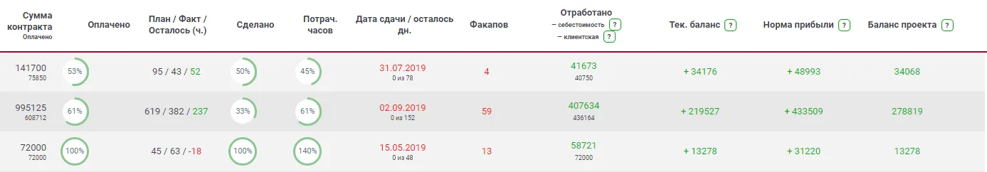 - Фактически затраченное время — сколько часов уже потратили на проект.