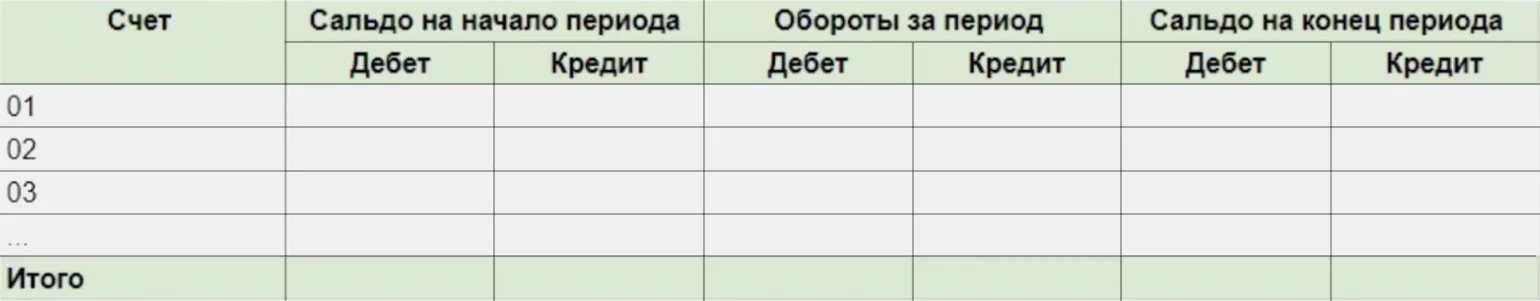 Структура оборотно-сальдовой ведомости (ОСВ): основные элементы