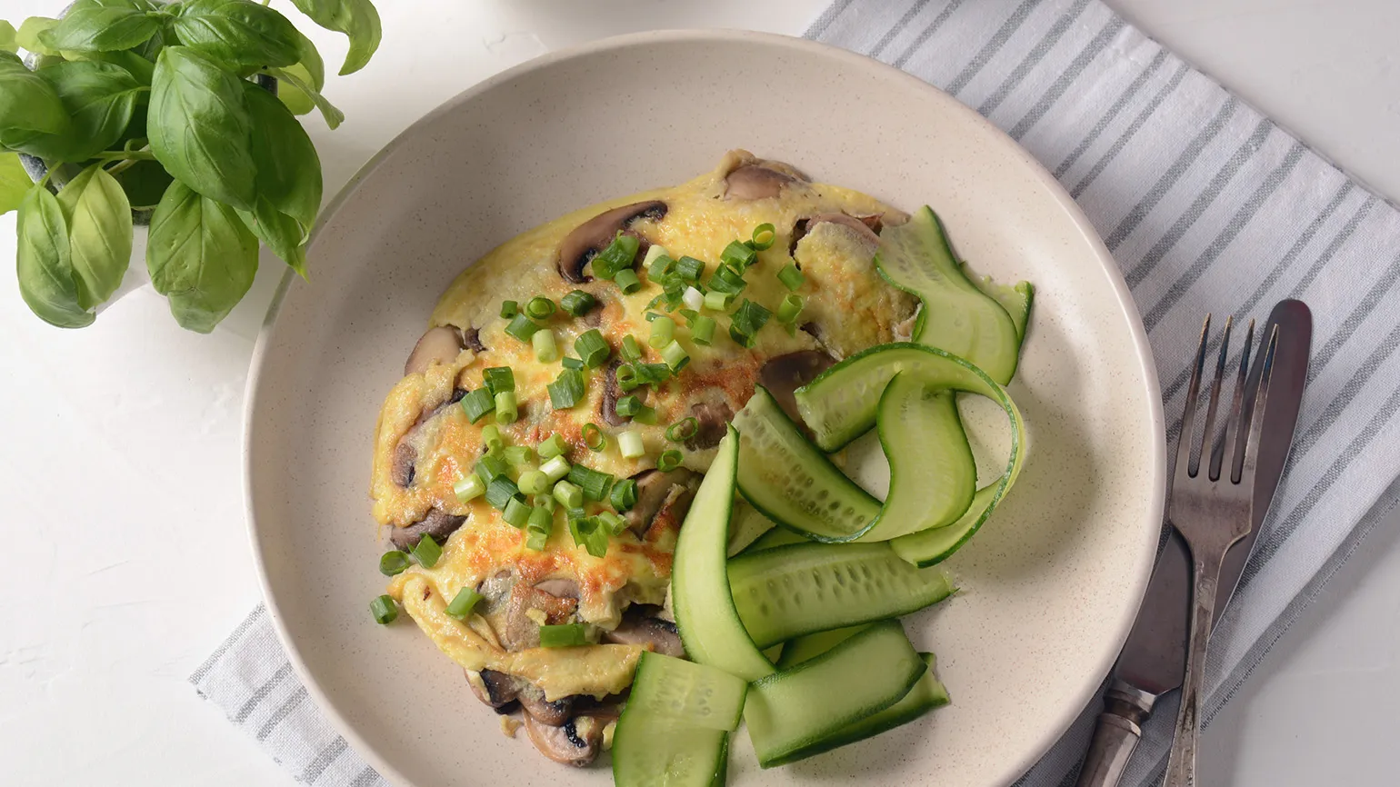 • Ужин. Домашняя фриттата с грибами и цветной капустой, подаётся с горошком и морковью или другими овощами.