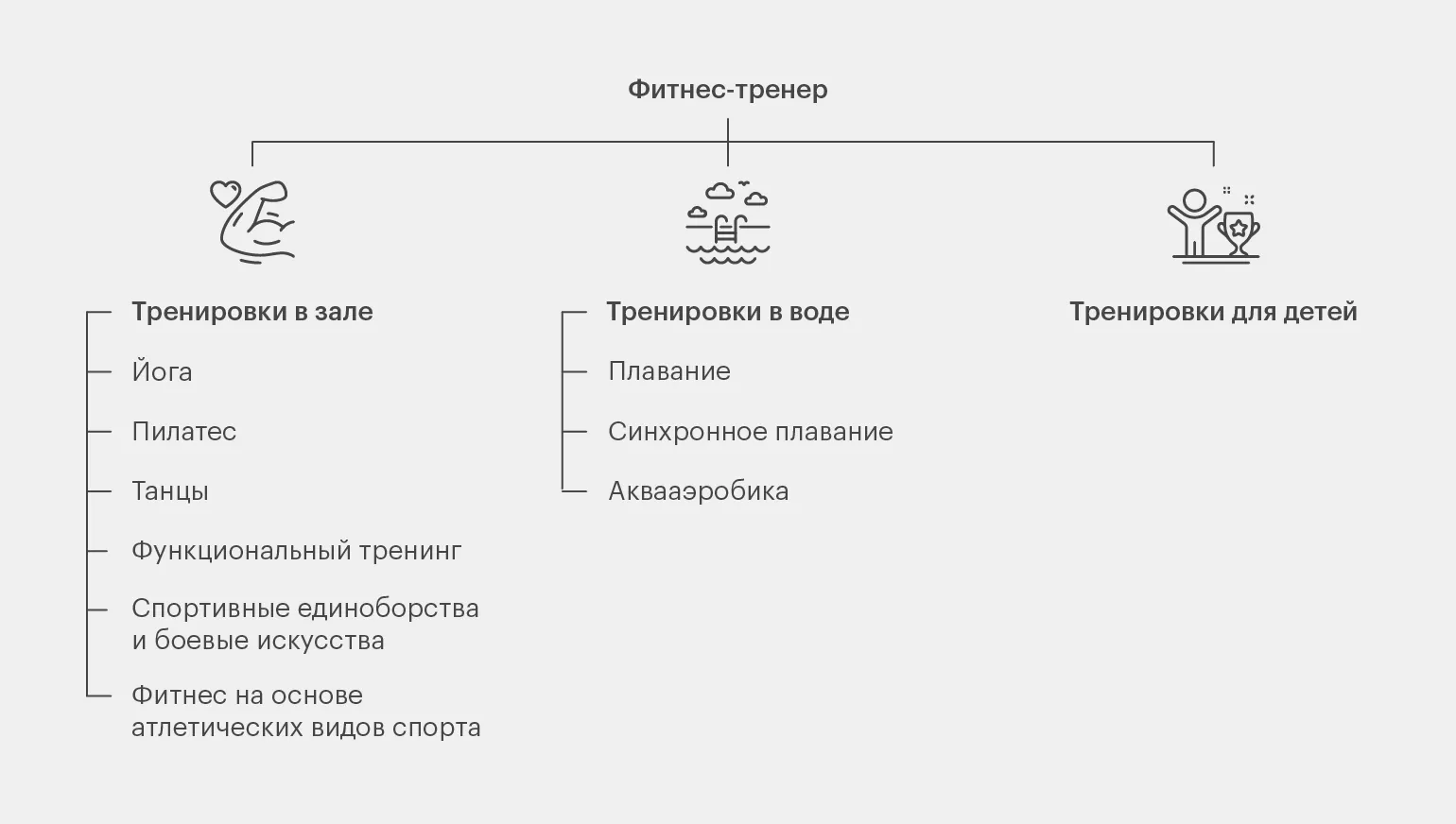 Помимо основной специальности фитнес-тренера, профессиональный стандарт определяет несколько специфических направлений. Эти направления включают в себя различные методы и подходы, позволяющие тренерам эффективно работать с клиентами, учитывая их индивидуальные потребности и цели. Каждое направление требует определенных знаний и навыков, что способствует более качественному обучению и повышению уровня профессионализма в области фитнеса.