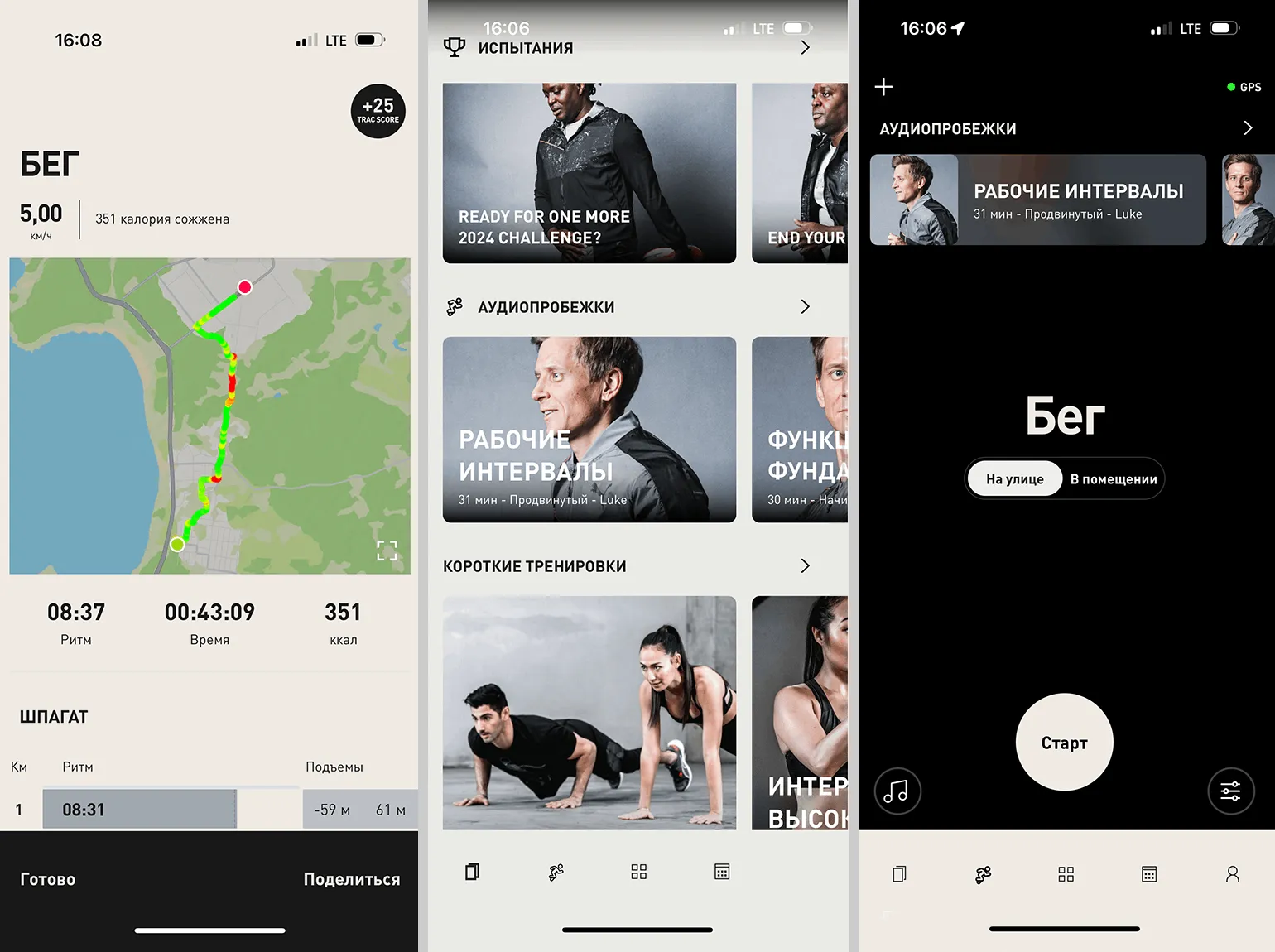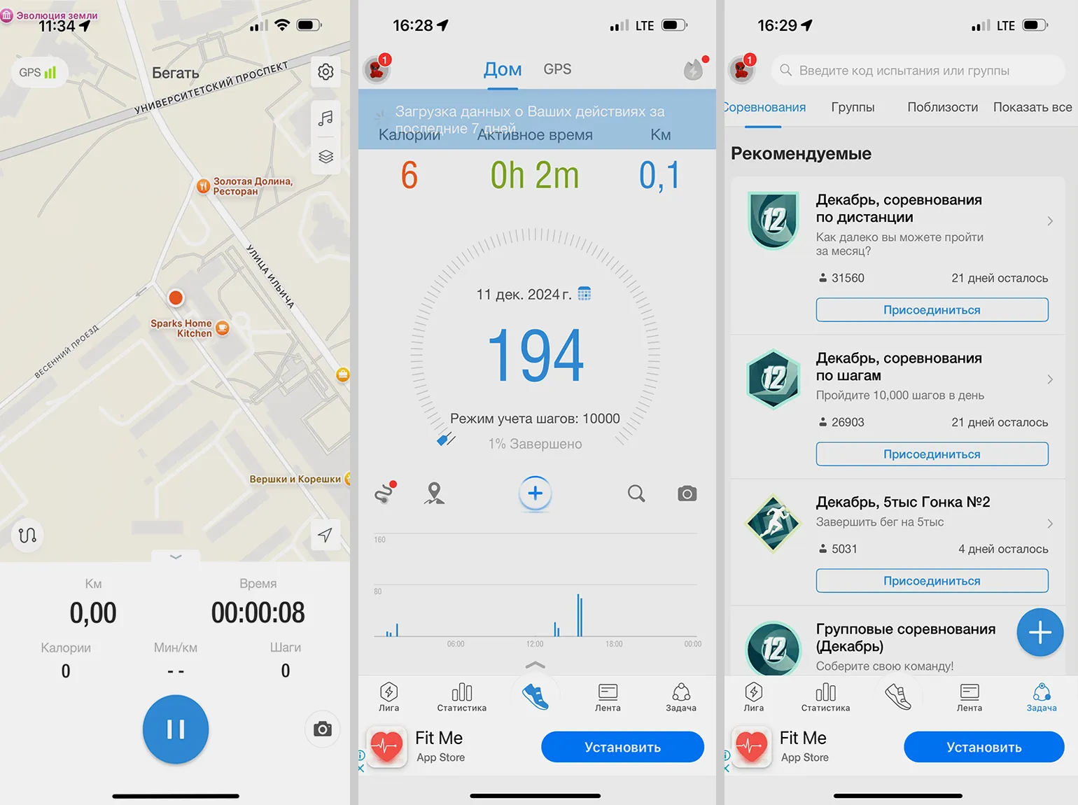Приложение отслеживает время, дистанцию, темп и максимальную скорость во время тренировок, однако не предоставляет информацию о количестве сожжённых калорий. В нем доступна общая статистика по проведённым тренировкам, а также возможность выбрать интересные вызовы, такие как активные выходные на свежем воздухе или преодоление 25 километров за 25 дней. Это делает приложение удобным инструментом для любителей спорта, стремящихся улучшить свои результаты и разнообразить тренировки.