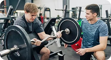- Возьмите гантель обеими руками, обхватив её за рукоять.